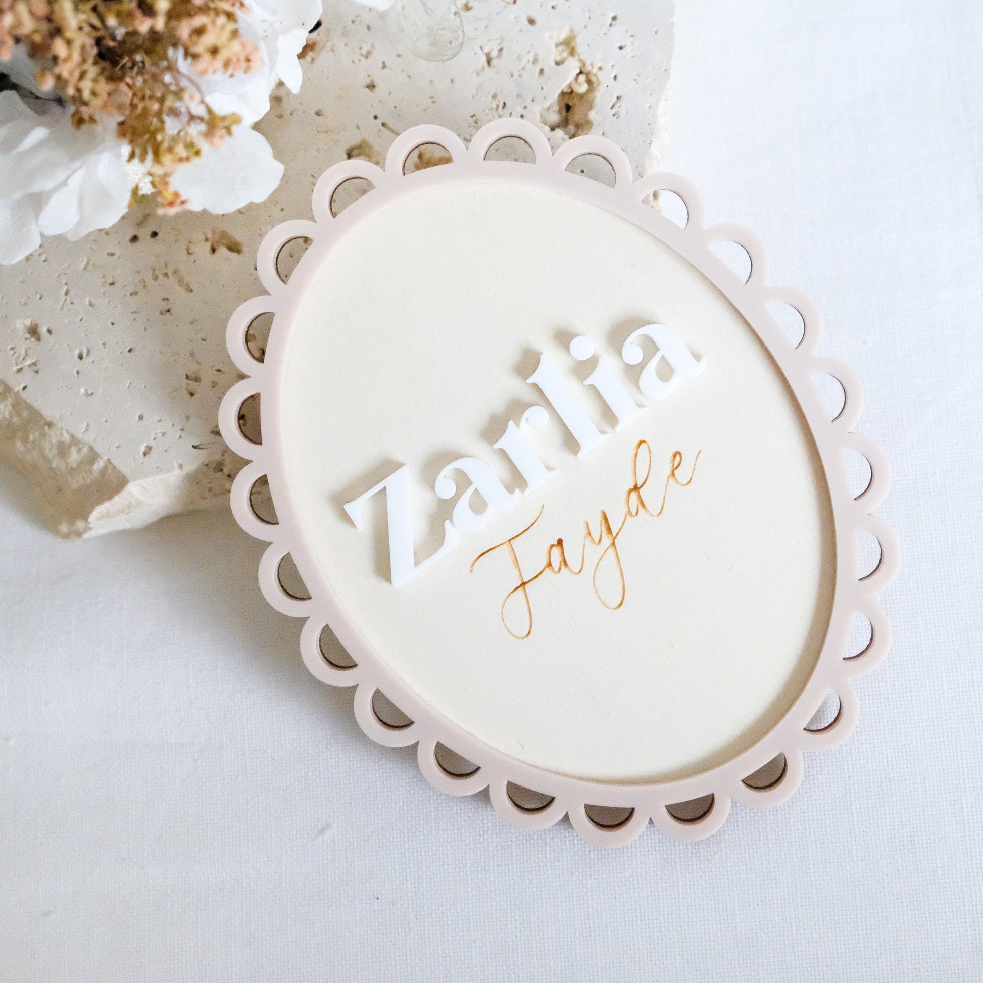 Celebrate your baby girl's arrival with our elegant acrylic vintage look birth announcement plaque – a timeless keepsake designed to mark one of life's most precious milestones.